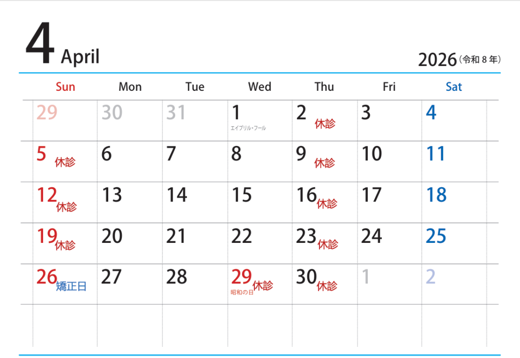 30日(木)休診日となります。